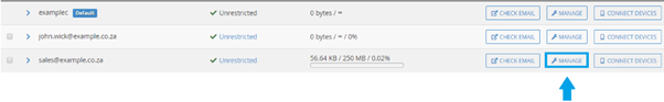 Click on “Manage” next to the email account