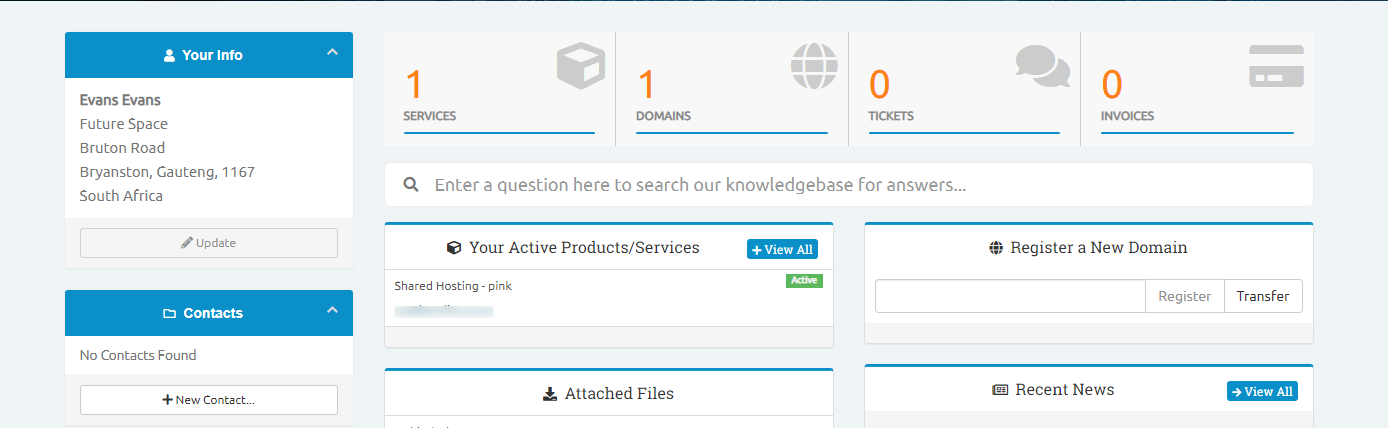 Log in to the client portal via https://hosting.cybersmart.co.za/clientarea.php