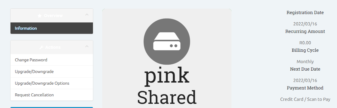 You can upgrade or downgrade your hosting plan from here by clicking on upgrade/downgrade